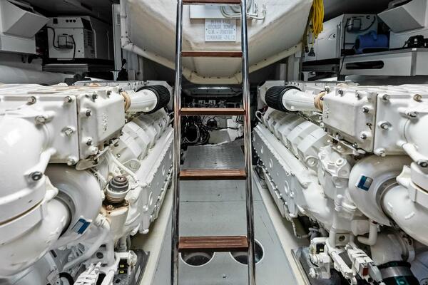 - Accesses (2) to the engine room (door and stainless steel and teak ladder in the portside support, hatch in cockpit)