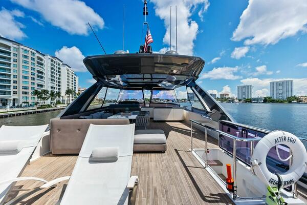 - Accesses (2) to aft platform through GRP and teak steps, stainless steel handrail, stainless steel and plexiglass gates (2)