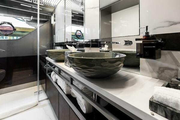 - Electric anchor windlasses (2 x 2700W) with controls at bow, main helm position and flybridge helm position