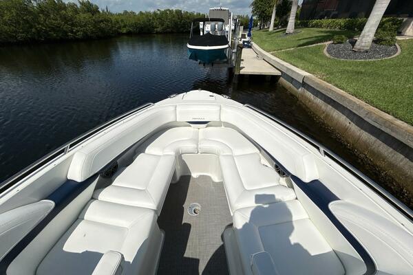 Convertible Seating: Double-wide helm and passenger seats with articulating seat bottoms effortlessly flip to create aft-facing lounges, ideal for watching watersports or engaging in conversation.