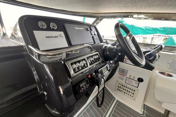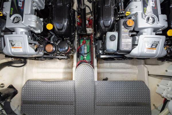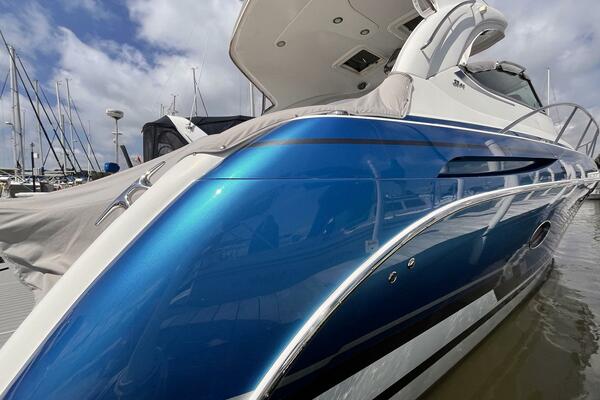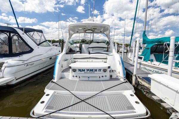 The Ocean Blue Metallic Imron hull is a head turner, all soft goods throughout are like new, the Aquatraction flooring in cockpit and platforms is a local - well done upgrade, and the boat features $100,000 in original factory options - including cockpit air conditioning, SeaCore protection system, hardtop with enclosure - cockpit cover too, extended platform with seat, underwater lighting, and more!