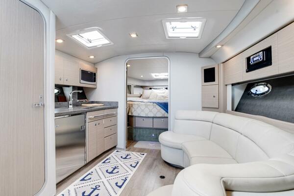 - Ultraleather aft cabin lounge/double berth with filler cushion and privacy enclosure