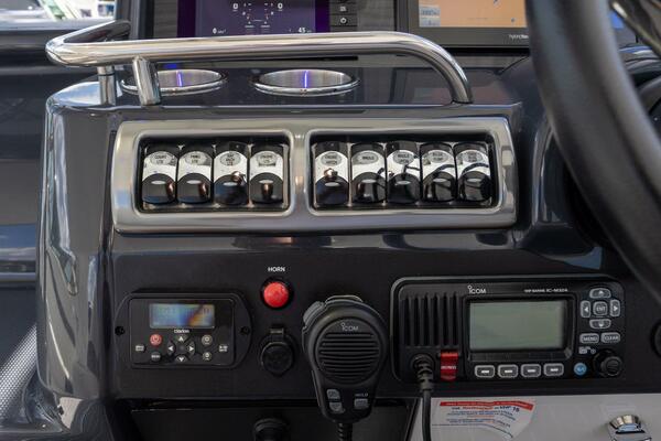 - Cockpit/swim platform blue/white LED courtesy lights with hand-held remote control