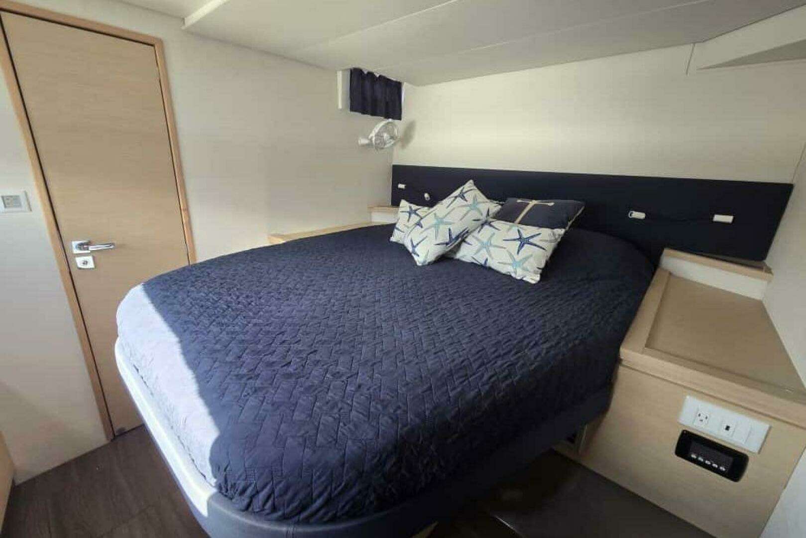 Sol Mates is a well appointed example of the popular Fountaine Pajot Saba 50 model. Outfitted in 2018 for extensive cruising the boat is now available immediately at an attractive price.Originally equipped with these FACTORY OPTIONS: Oceanic version = Curtains in cabins, Lazy jack, Double clutch for reefs 2 and 3, Pressurized seawater system, 2000W Inverter / Charger, Fusion audio pack Bluetooth 4 Speaker, 110 V main grid, Interior 12V outlet and waterproof exterior 12V outlet, Interior courtesy lighting, Two pulpit seats, Electrical windlass (1500 Watts), Deck shower (cold water), Electric winch for mainsail, Dralon protective cover for wheel, Lazy bag, Auto. switch for bilge pumps, VHF mast head antenna prewired, CST mainsail full batten Four Electric freshwater heads large bowl Bimini for helm station Outdoor foredeck cushions Outdoor cushions Deck and Gear Hot water deck shower 13,5KW 110V 60HZ genset (12597 hours) Two Additional AGM battery 150A Pack Raymarine II :Autopilot, VHF 260, 2 x multifunction display AXIOM (9''), I70, AIS 650 Add. windlass control chain counter Upgrade Bose Cockpit Courtesy Lighting Package Antifouling, primary epoxy Synthetic teak floor transoms and cockpit Cockpit fridge Freezer Beds with slatted base for 4 cabins Upgrade to Volvo 75HP D2 engines Bowsprit and gear for gennaker Safety equipment MP10 container liferaft Water heater 110V Additional electric freshwater pump Electric davit winch Synthetic teak floor Maestro shower Underwater lighting 2x21 WCustom Dealer options installed during commissioning: Iridium Go System W/ External Antenna 110v 60hz Air Conditioning for Saba 50 Coachtop Rails for Foredeck Port and Stb Galvanic Isolator 110v protection Upgraded 110V System with Paneltronics panel W/ 8 Extra Outlets Link Pro Battery Monitor Solar Panels 5 x 165 W mounted on hard top Spot Gen 3 Vessel Locator and Text Messaging Raymarine 4KW 18" HD Radar on Regular Mast Mount Ray 70 VHF Radio W/ Second Station at helm and Hailor horn on Mast Add Fishfinder Transducer for Raymarine ES and GS Displays Digital TV Antenna On Mast Upgrade Factory Fusion Stereo to Fusion 750 DVD BLue Tooth Interfaced with Plotter Aigean WiFi AMP Add Kayak Mount to FP Davits BBQ Grill Large Magma Monterey Infrared Caframo Scirocco Cabin Fans x 8 Interface Volvo Engines to Raymarine Chartplotter Bow Speakers, Amp Speakers mounted under Forward Eyebrow Install customer-supplied Flat Screen TV/Mount 2 Rod Holders Engine room fire suppression system SeaWater Pro Watermaker 110v Isotherm Icemaker Washer Dryer Raycor Fuel Filter System Dive Compressor Fresh and Salt water Washdown pump Seagull water filtration system 115V dive compressor 100 Meters SS 10MM Anchor Chain, 10MM Windlas Gypsy Aft Sunscreen of Cockpit Aft Sunscreen of Helm Bimini Anchor Locker Bulkhead Custom Salon Table on Pneumatic Mounts Custom Work Bench Synthetic Floor to Match at Helm, Flybridge, and Foot Wells in Bow Victron Power Panel Color Control GX . Interfaced to Solar and Wind, Current Victron Battery Monitor, NMEA 2000 Buss, Victron Inverter Charger Upgrade Volvo Controls to Glendinning Electronic Controls Hydraulic aluminum davits Helm Enclosure 3 Sides Glass with Full Door that leads to deck Second footswitch for Electric winch at Knee Level near Winches Second Swim Ladder Reflective tint on saloon windows 85lb Stainless Steel Anchor Mast Lights North Sails V Series Spinnaker Parasailor , Rigging and Parts and Installation Port, Starboard, aft Textaline Screens in Cockpit Secondary Anchor Rode Fortress 37 W/ 200' Rode and 20' Chain Starboard Winch for Parasail or Downwind