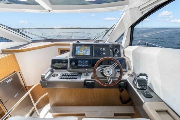 - Raised helm deck forward to starboard