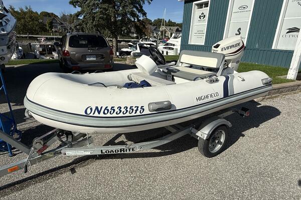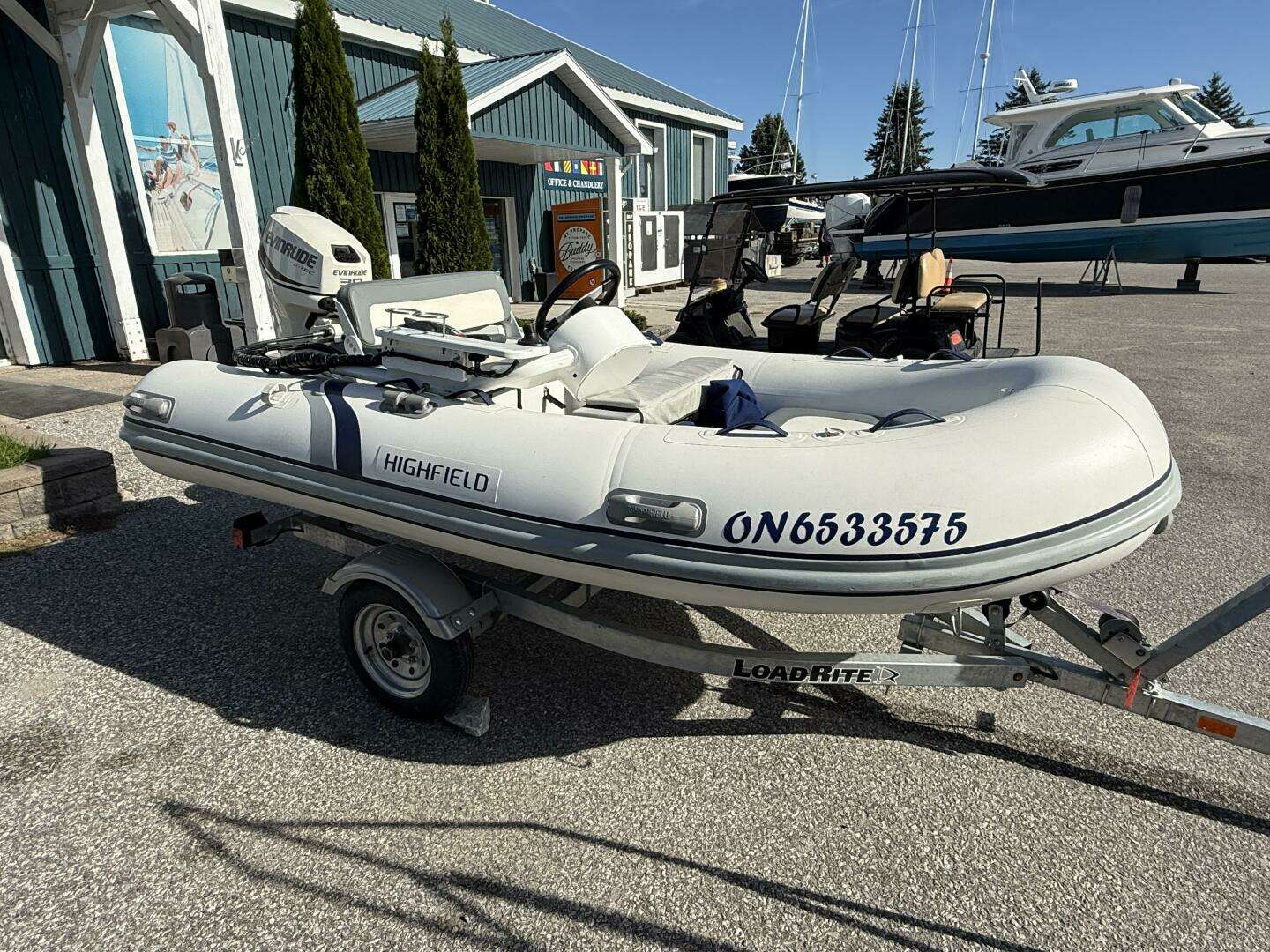 2018 Highfield CL340 Console — A versatile and lightweight rigid inflatable with an aluminum hull, side console, and seating for multiple passengers. Ideal as a tender or small runabout, offering easy handling, durable construction, and efficient performance. Features: - 2018 LoadRite Galvanized T