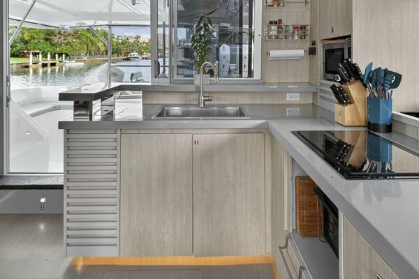 - Flybridge galley with sink, refrigerator. (new 2024)