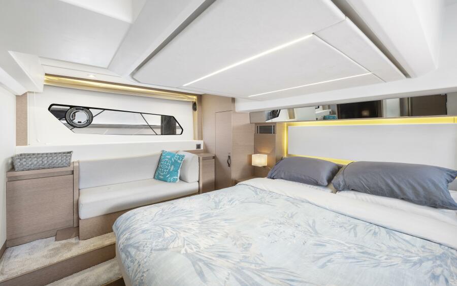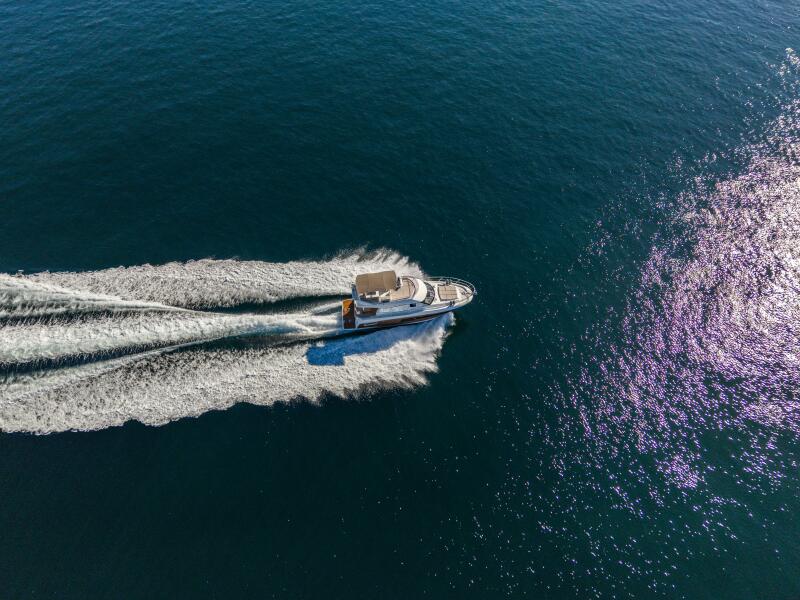 The Prestige 460 Flybridge blends modern European design with spacious living and remarkable performance, creating the perfect balance between luxury and practicality. Designed by Garroni Design and JP Concepts and built in France by Prestige Yachts, this 46-footer showcases the builder’s signature open layout and intelligent use of space—features typically found only on larger yachts.