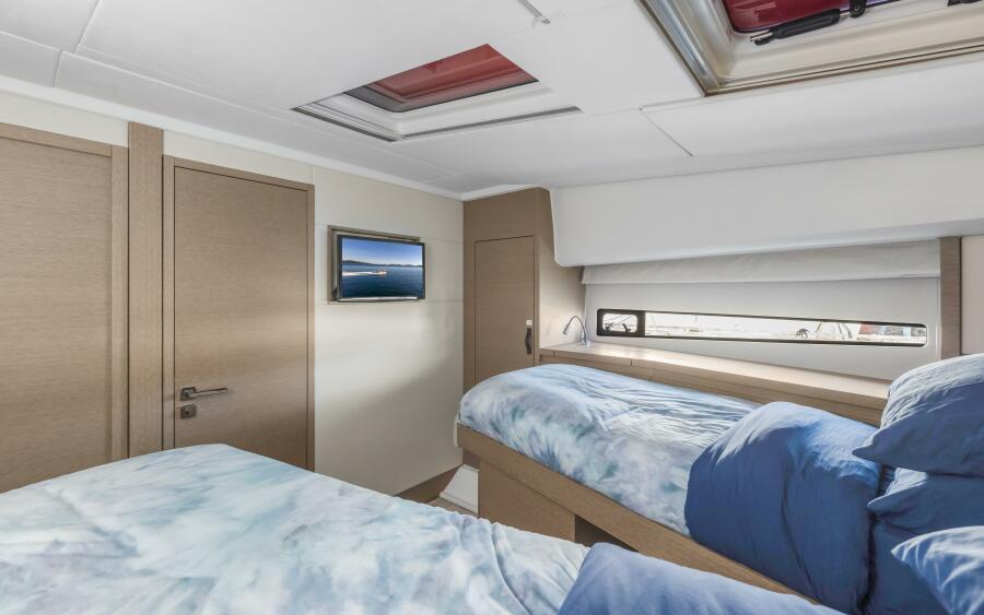 - Samsung Smart TVs – 42” in salon, 24” in master and VIP cabins