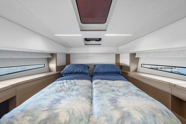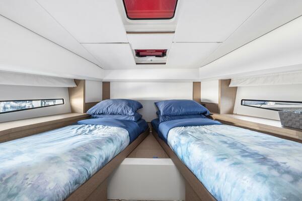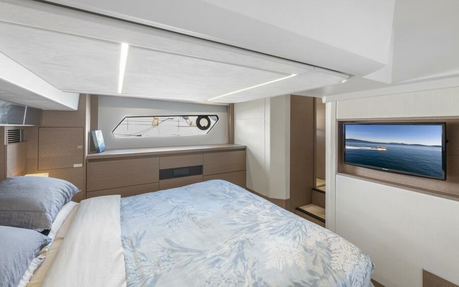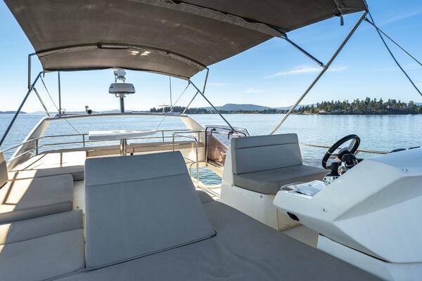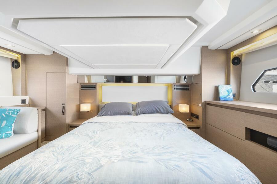 - Fusion premium audio system throughout salon, guest stateroom, and flybridge