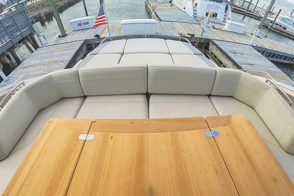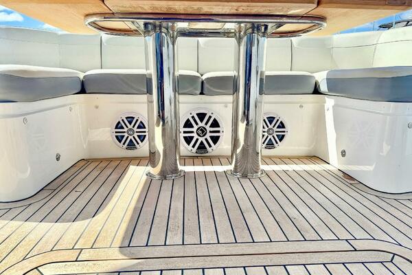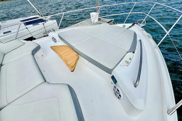 Her thoughtfully designed deck spaces include expansive bow seating, sun pads, and shaded aft deck dining and lounging areas, ideal for both relaxing cruises and lively entertaining.