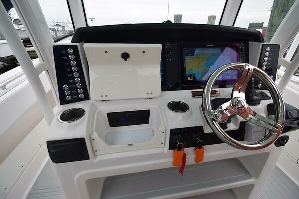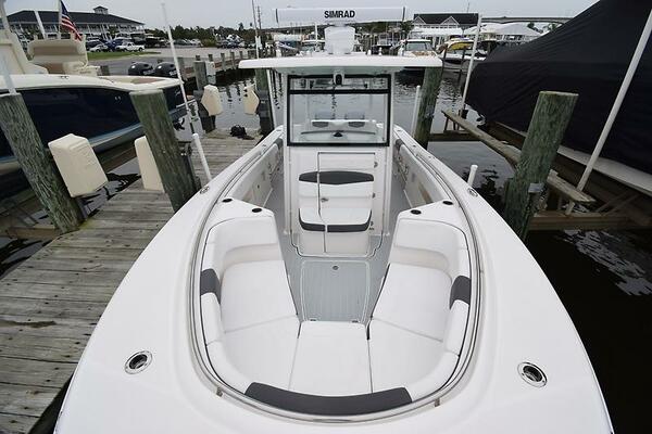 Highly optioned and impeccably clean Robalo R302 with joystick control and a new 2025 tandem axle aluminum trailer. From her brightly polished hull, full canvas cover, custom individual canvas covers, incredible wetsounds amps, speakers and speaker bar, Simrad displays, HALO 72 mile open array radar, autopilot, Sionyx night vision camera, new VHF e-rigger electric antenna, custom helm charging ports, and new Seadeck custom flooring throughout, this R302 has it all. Over $19k in owner upgrades this summer! She even has fresh 2025 batteries! Call, text or email with any questions or to set up an appointment to get aboard.