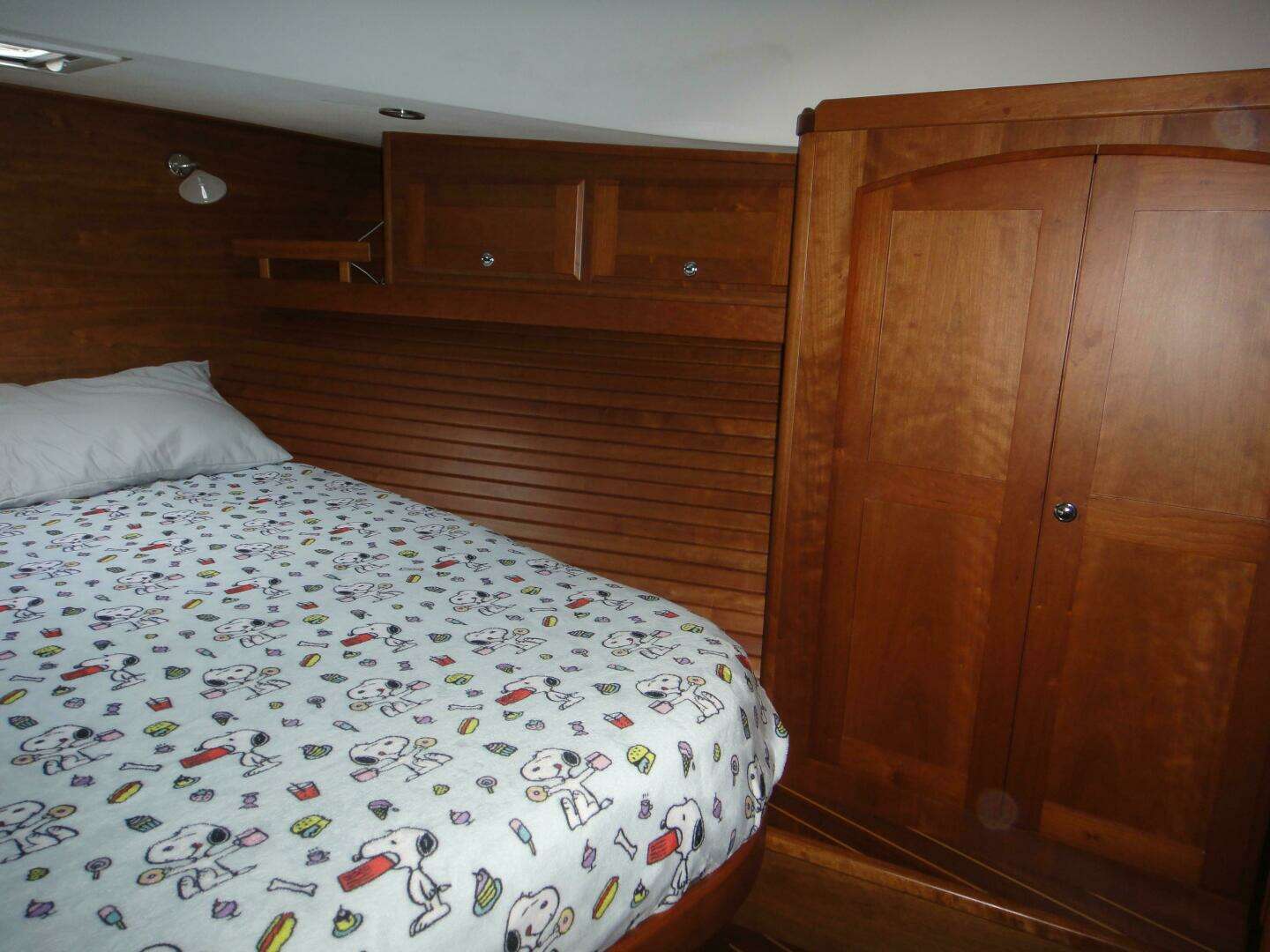 - Master stateroom amidships with island berth Guest cabin forward with queen sized island berth