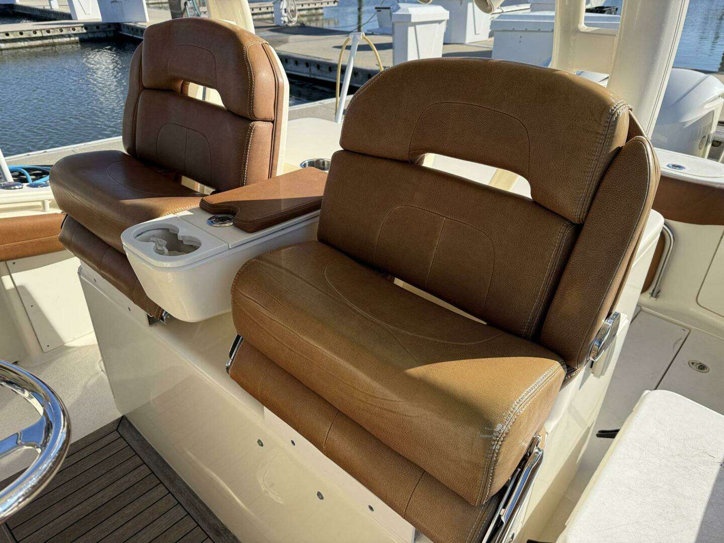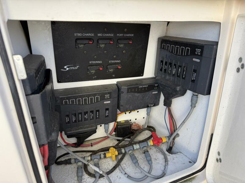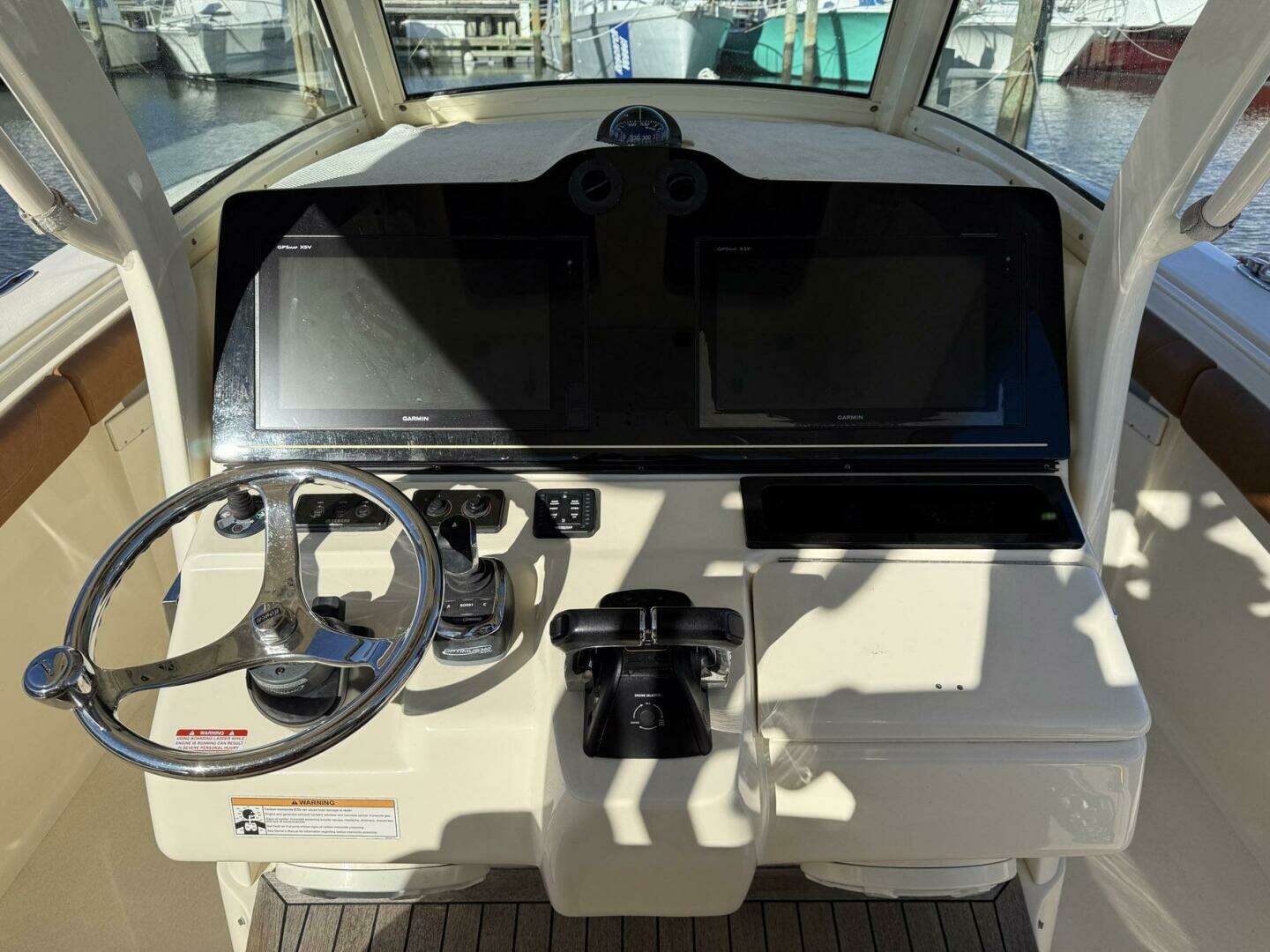 "Electric Ark" a clean and well-maintained 35 Scout 2018 powered with Triple 300hp Yamaha Four Strokes. Garmin Electronics, Fusion Stereo, Bow Thruster and Joystick Control, this Scout is loaded and ready to go!
