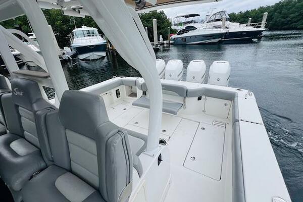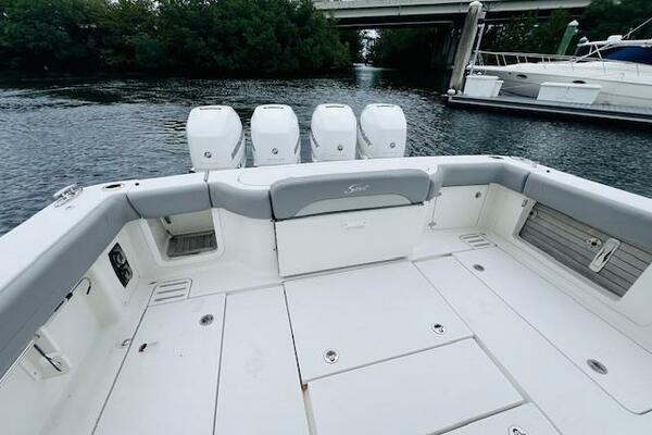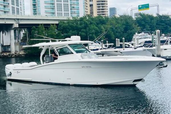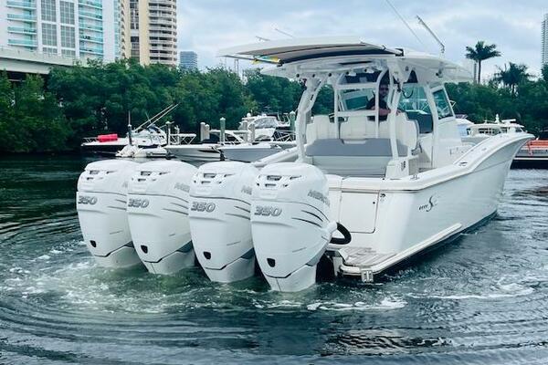 Introducing the impressive 2018 Scout 380 LXF, a true epitome of luxury and performance in the world of yachting. This vessel, equipped with Quad 350hp Mercury Verado engines, has been brought into the spotlight once again in 2023 with a host of remarkable upgrades and enhancements, making it a sought-after gem in the market.