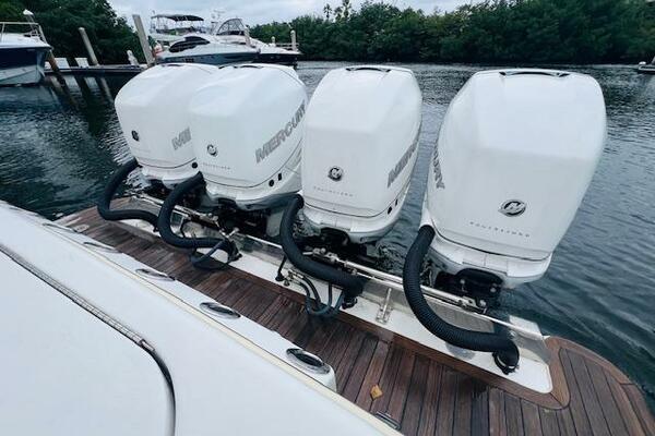Quad 350hp Mercury Verado's: Power meets performance with four Mercury Verado engines, ensuring a thrilling and efficient cruising experience.