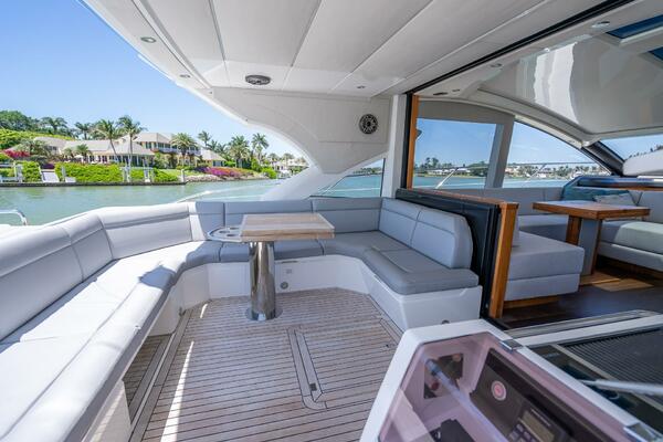- Electric Sunroof & sliding glass cockpit door with drew down mechanism at seating to fully open the space between the main salon and cockpit area, great for entertainment & cruising