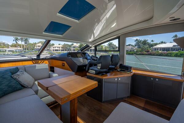 - Large electric sunroof & sliding glass cockpit door with draw down mechanism at seating to fully open the space between the main salon and cockpit area, great for entertainment & cruising