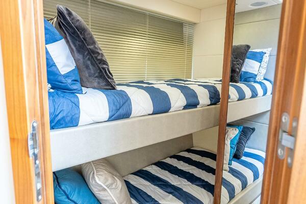 - Wood flooring throughout with carpet in the staterooms & custom Dcor with white leather inlays.