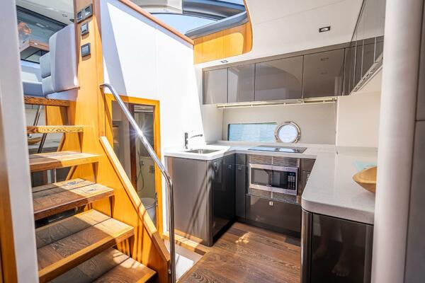 - Cockpit wet bar with Kenyon bbq electric grill, stainless sink, refrigerator, & icemaker/ freezer