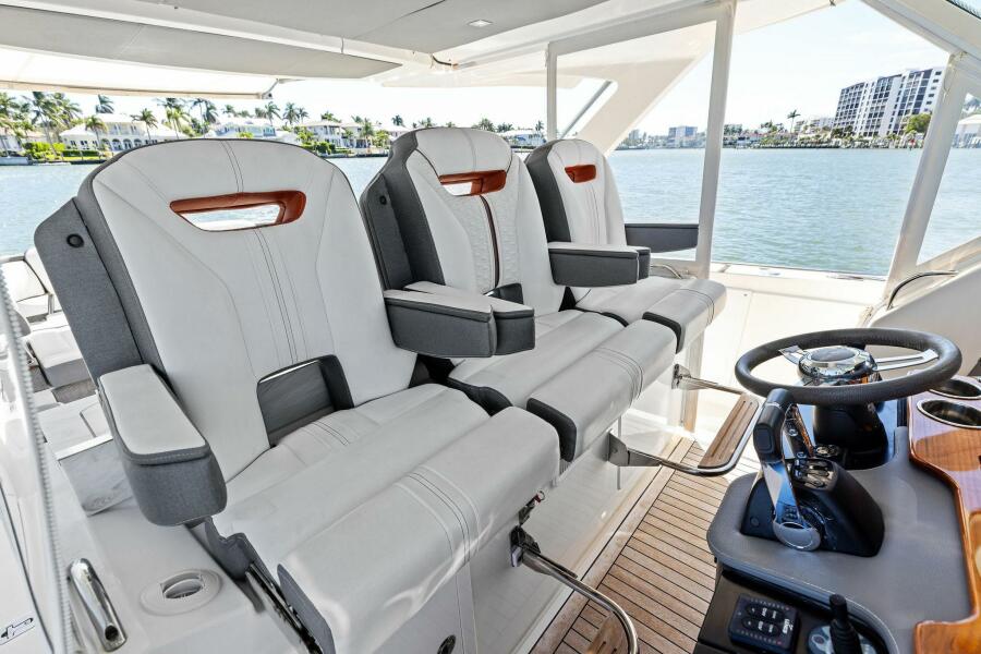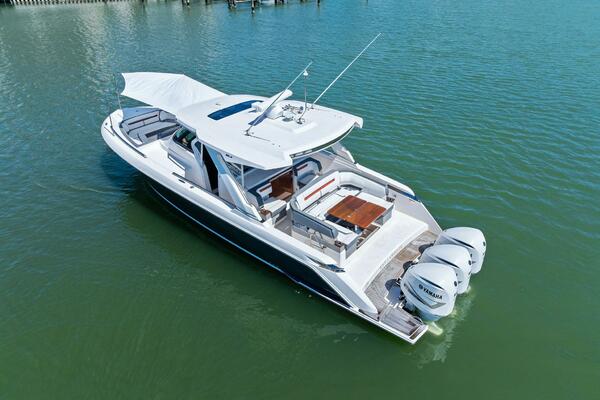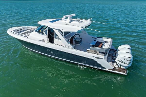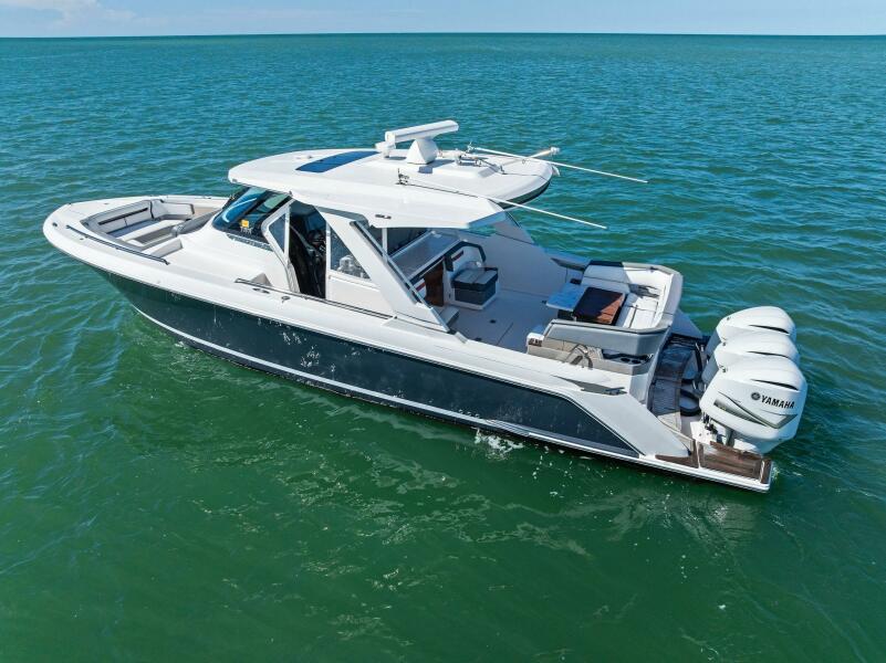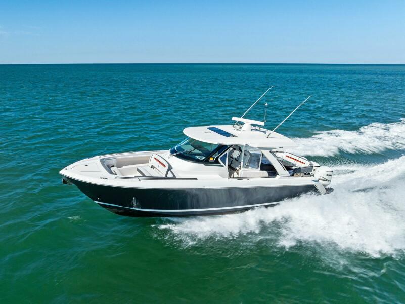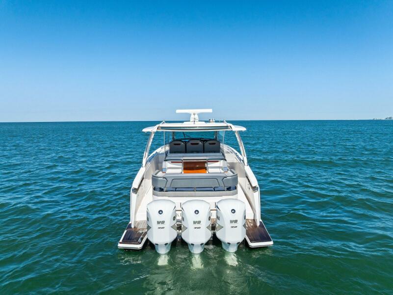 2018 Tiara Yachts 38 LS for sale, merging sport performance, refined craftsmanship, and innovative design in one versatile platform. Powered by triple Yamaha F350 outboards with only 350 hours, this 38 LS delivers exhilarating performance with smooth, confident handling enhanced by the Yamaha Helm Master joystick with StayPoint. Precision docking and station-keeping are effortless, making her as easy to maneuver as she is thrilling to run. Her dual Garmin 16” displays, Garmin Autopilot, and bow thruster provide total command at the helm, while her sculpted lines, hardtop skylights, and Pure Grain White upholstery with orange accents showcase Tiara’s signature blend of elegance and performance.