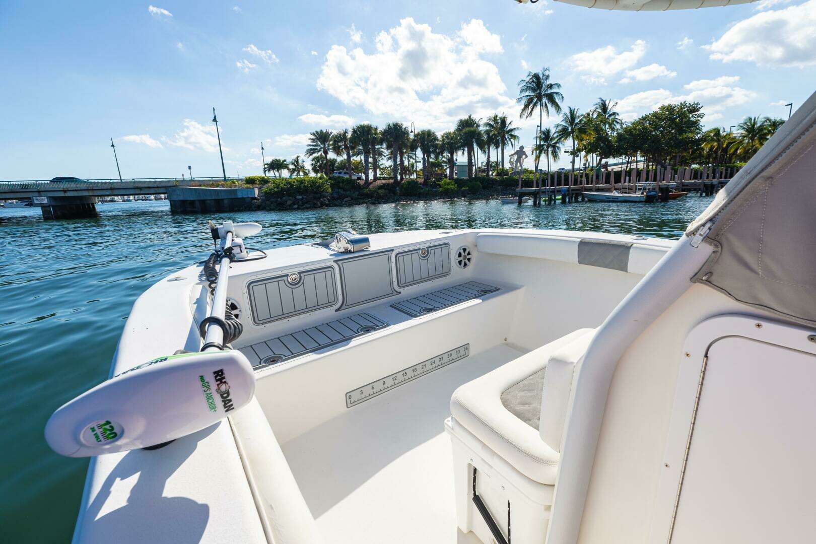This boat is dialed in for anyone who wants a mix of serious fishability and comfortable cruising. It’s running upgraded Garmin electronics, has a clean and protected helm with enclosure, Fusion audio, and an enclosed head — everything you want for long days on the water. The deck layout is super functional with dual stations, livewells, a trolling setup, plenty of storage, great lighting, and comfortable seating forward and aft. Powered by twin 225HP Mercury Verados and coming with a trailer, it’s a solid, turnkey package that’s ready for offshore trips, sandbar runs, and anything in between.