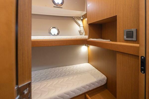 - Bunk berth with 3 storage cabinets as well as 2 storage bins under the berth