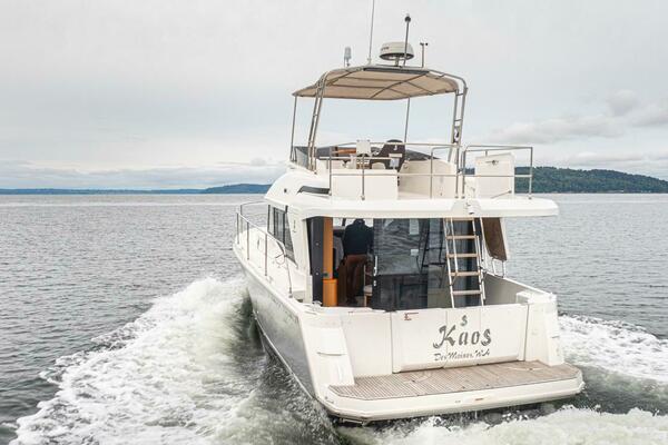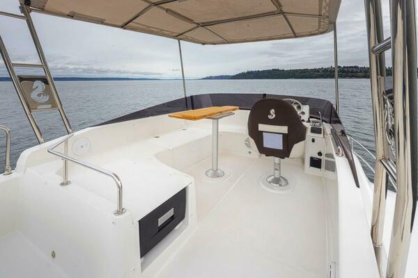 The Swift Trawler 35 has strong harmonious lines making you feel reassuringly safe, and this quality is repeated in the design and fit out choices. Built on a semi-planing hull developed through the expertise of Beneteau Power, the Swift Trawler 35 has a Cummins 425 hp engine, and together they procure pleasure underway and offer easy maneuvering. Protected by a fixed Bimini, the Swift Trawler 35's flybridge has a comfortable living space with a sea view.