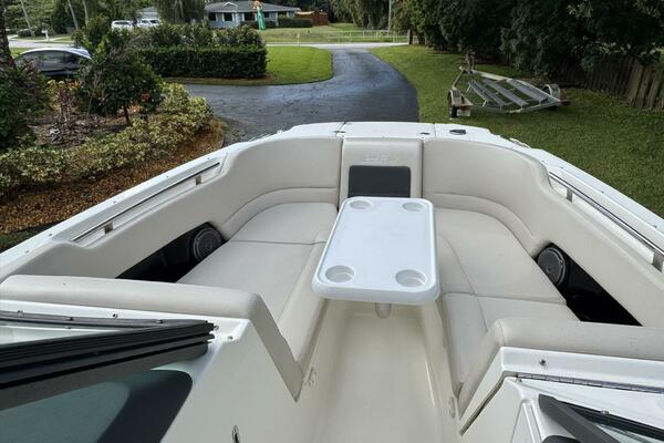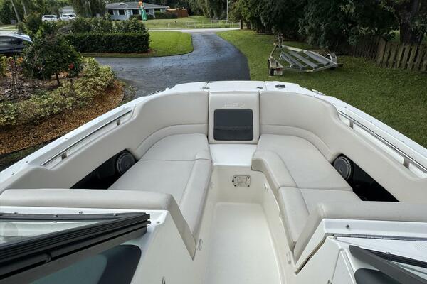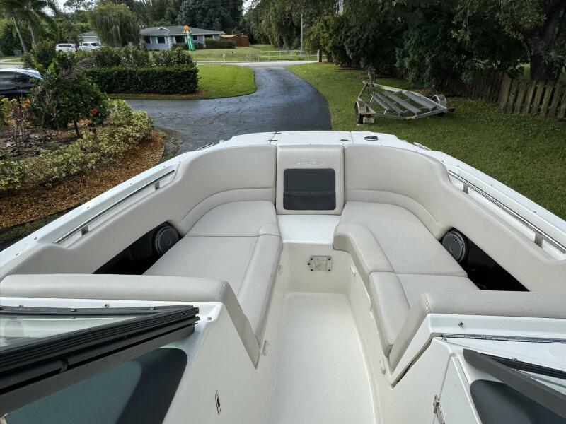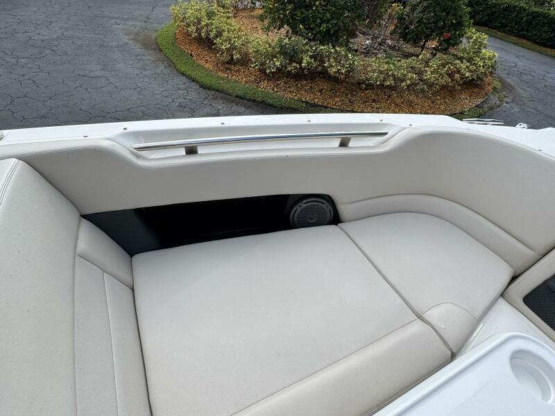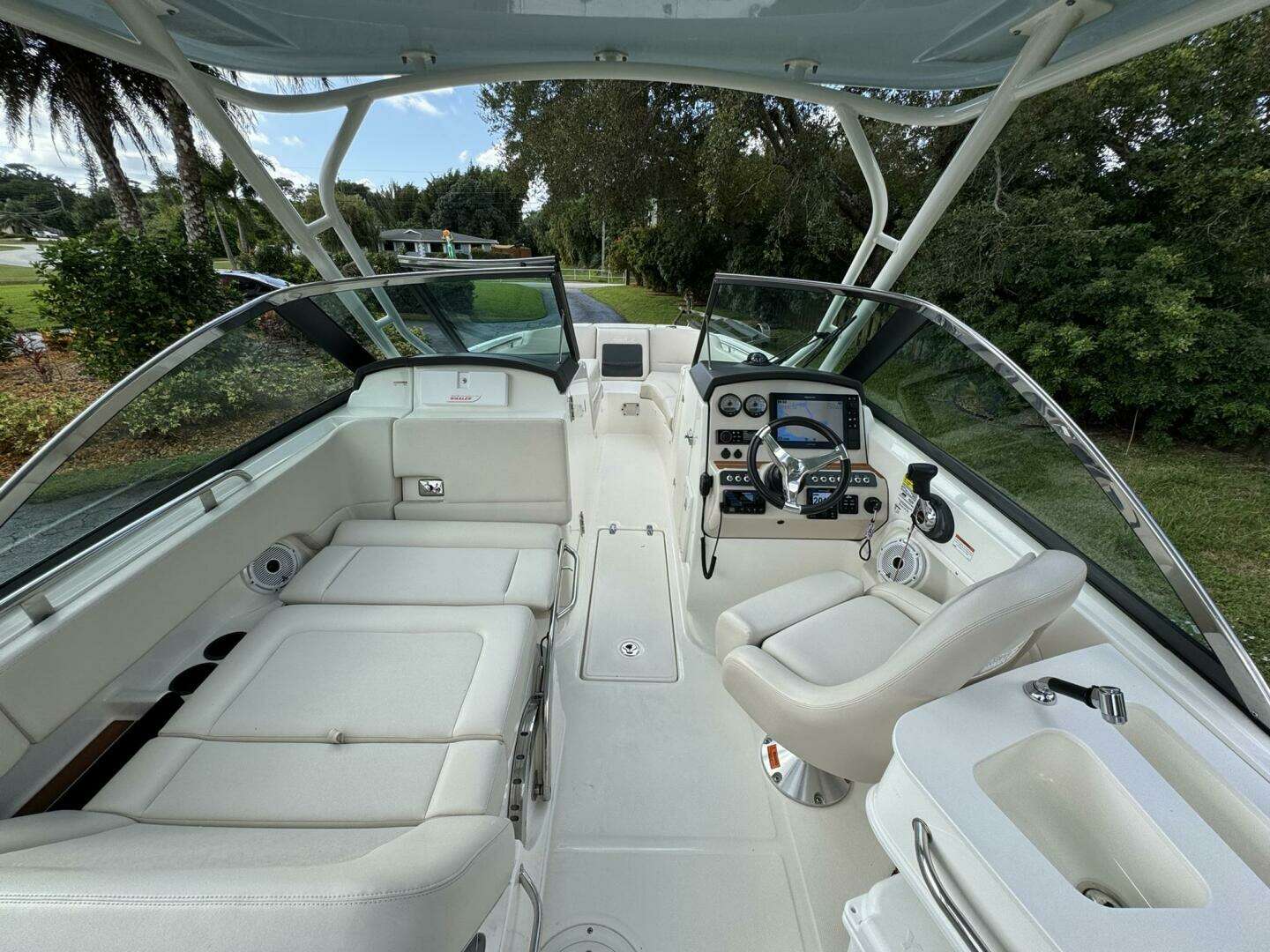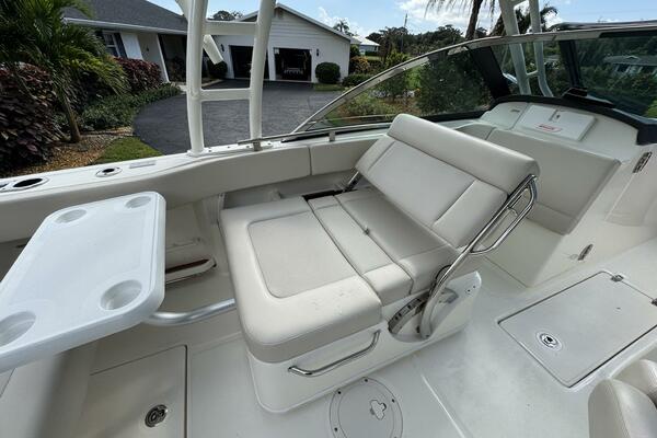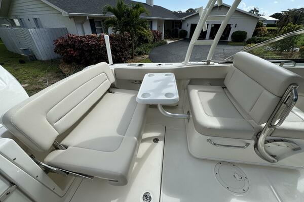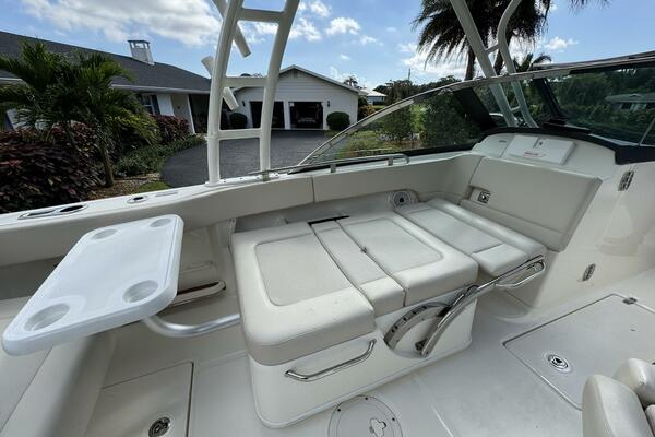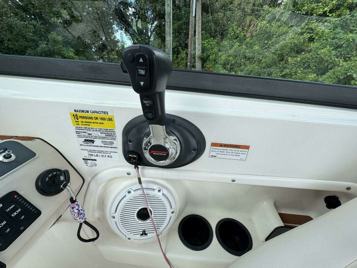 | Notable Upgrades: Mercury 350XL Engine with only 109hrs Digital Throttle and Shift Premium Audio Package- Fusion Headunit with JL Speakers Raymarine Axiom Pro 12" Chartplotter Raymarine Ray52VHF Raymarine Autopilot Anchor Windlass Battery Charging System (plug in transom) Corian Countertop at Utility Center with Stainless Steel Rail Fishing Package- 14 Gallon Livewell, Raw Water Washdown, Stainless Steel Toe Rails w/Under Gunnel Storage Shelf, Stainless Steel Transom Mounted Rod Holders Freshwater Shower- Bow and Stern Sprayers Hardtop w/gelcoat- Hardtop Underside Matches Hull Color Light Blue White Rub Rail with Stainless Steel Insert Seating- Bow Filler Cushion Table- Bow Table with Dedicated Storage, also works in Cockpit Trailer- Aluminum with disc brakes Windshield Cap-Stainless Steel Blue Canvas Covers Bow and Cockpit Snap On Light Blue Hull Color |
