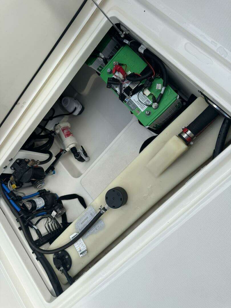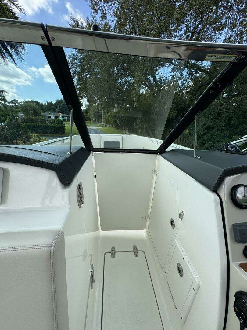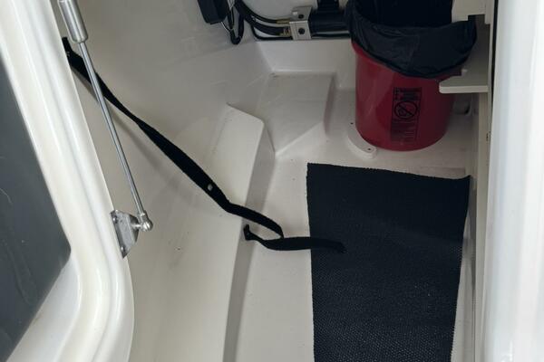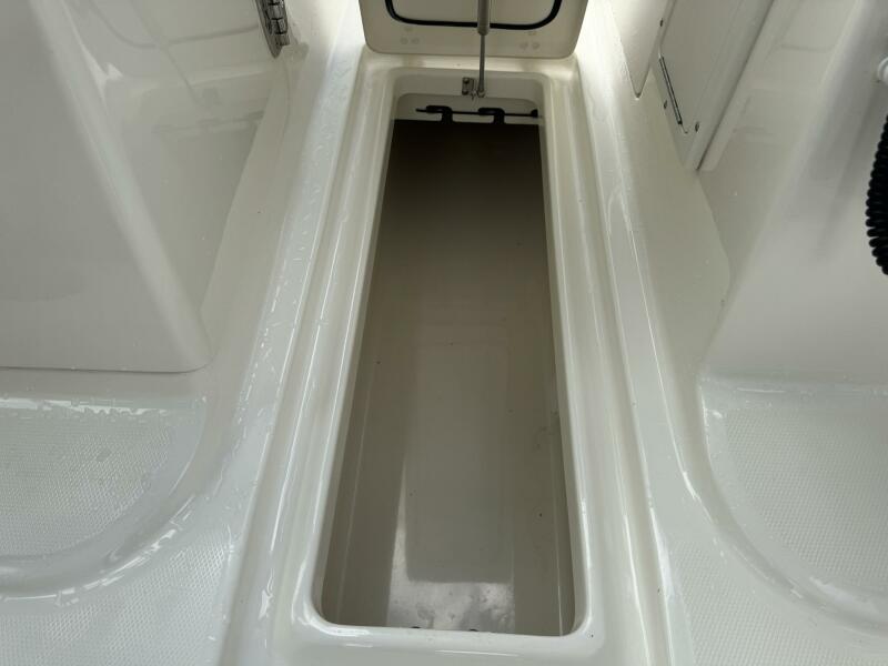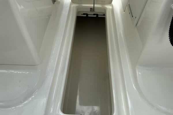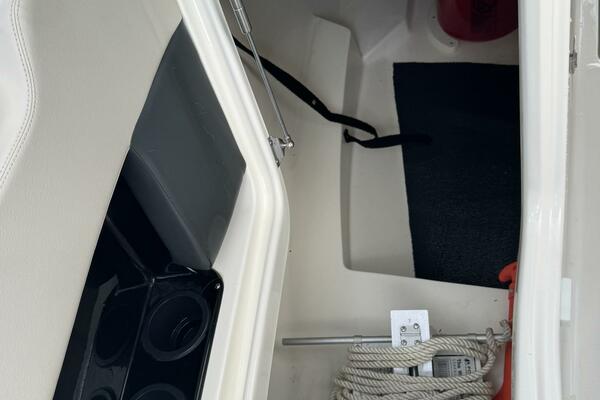- Console storage with stainless steel latch and storage system for life jackets, dock lines, and fenders