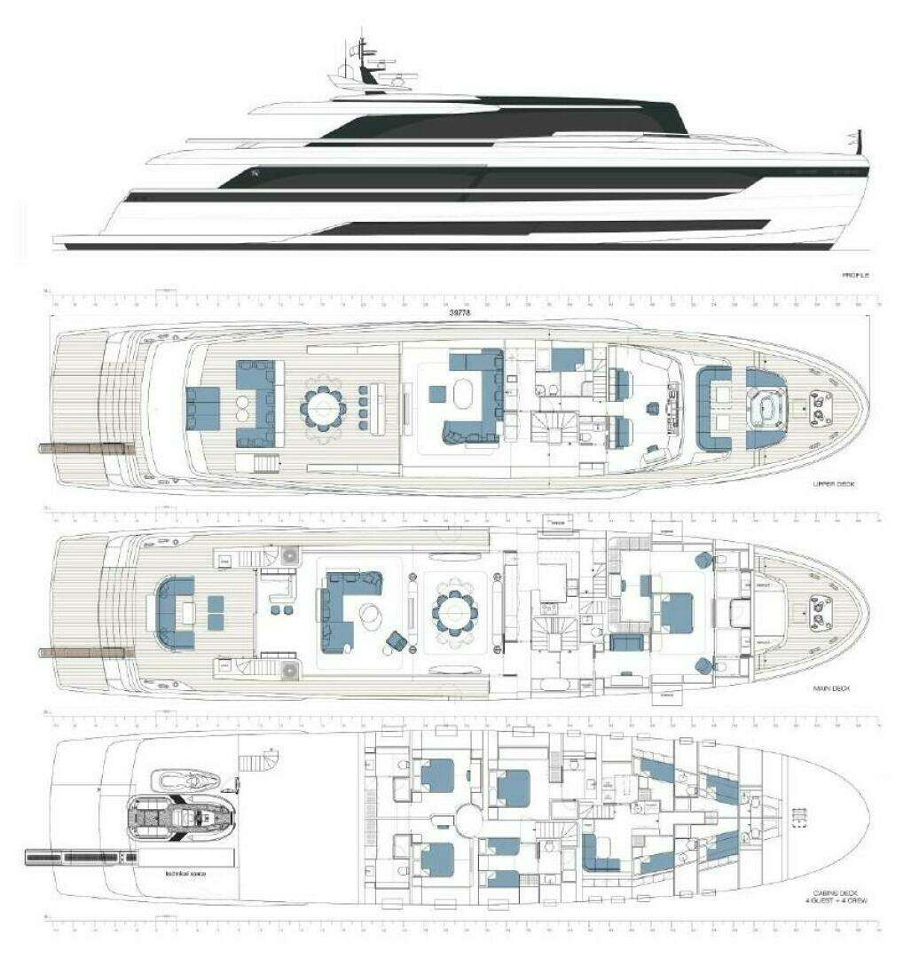 • Main deck with main saloon, bar, formal dining room, day WC and fully