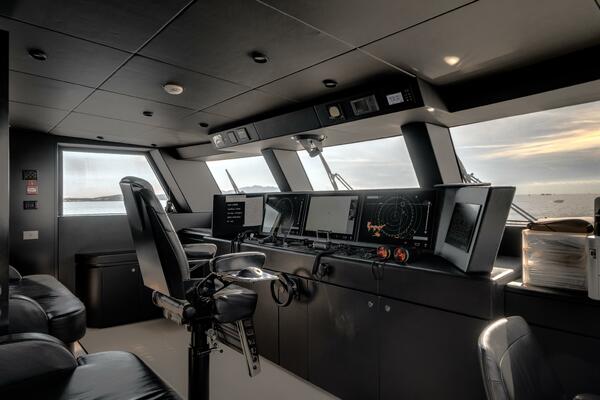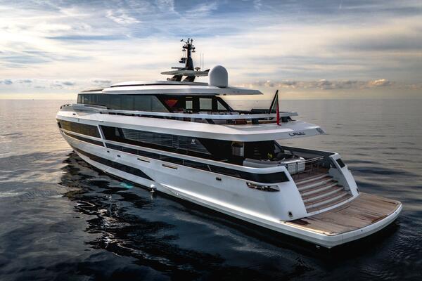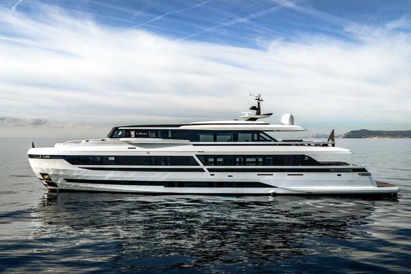 • Aluminum superyacht with a modern long-range design and impressive volumes • Private use and VAT paid • Infinity Jacuzzi on the foredeck • 5 cabins for 10 guests, including a master suite on the main deck • Fin stabilizers both underway and at zero speed