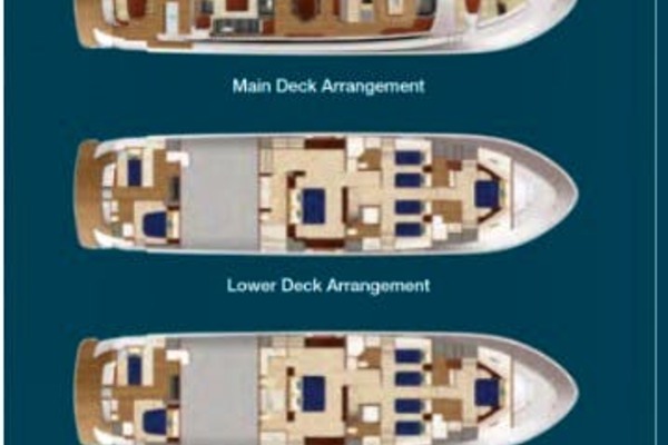 - Zero speed fin stabilization, hydraulic bow and stern thrusters, and dual water makers