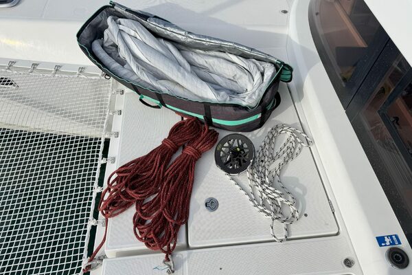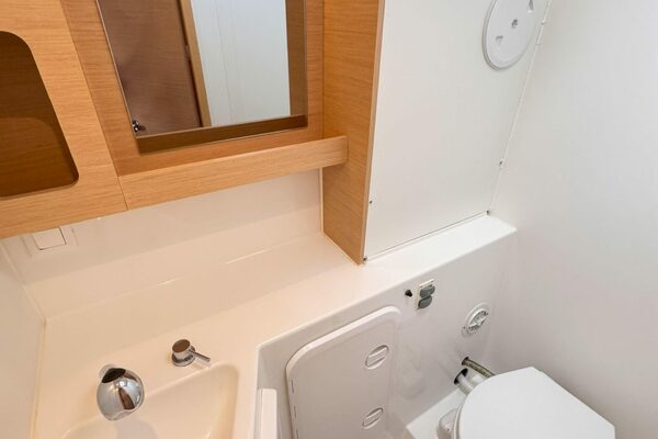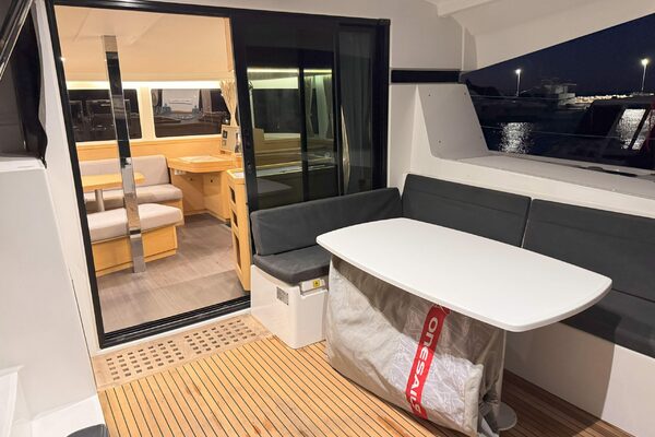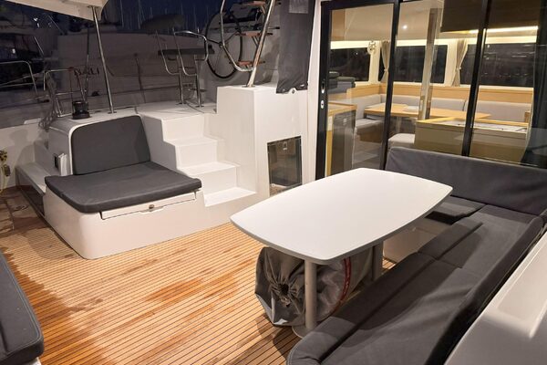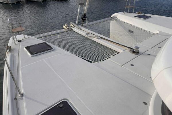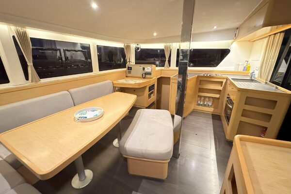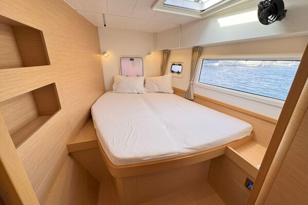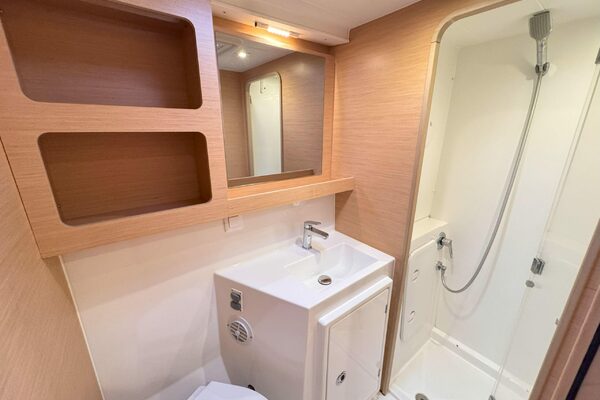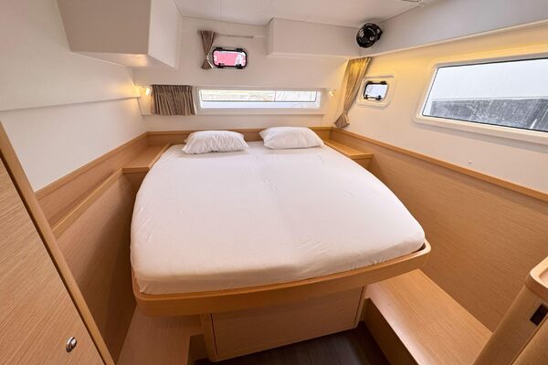 KEY FEATURES: Code 0 - Air conditioning - Generator - Teak deck - 57HP engines Lagoon has set the benchmark with the Lagoon 42, of which over 1'000 units have been produced making it the world's most successful catamaran ever. Sofibel, this 4-cabin version, is as near to perfect as a liveaboard cruising yacht can be and is sure to catch the eye of any sailing enthusiast. It has many great additions to make boat life easy and enjoyable. Among the extensive list of upgrades are 57HP Yanmar engines, 11kVa Cummins Onan generator and reverse cycle air conditioning (48,000 BTU) throughout the saloon and all of the cabins, Code 0 from ZL Evolution Sails coupled with Incidence main and self-tacking jib, teak deck in the cockpit and transoms, B&G electronics and autopilot, 3-blade folding propellers, solar panels, 2 Harken 46.2 electric winches at the helm station with another 2 manual units of the same size in the cockpit. Sofibel is a cruiser's dream she's comfortable, well maintained and ready to welcome a couple or a family as their new blue-water cruising boat of choice. It'll be hard to find a better-equipped Lagoon 42 in this price range. Contact us for a viewing at Marina Kornati or if you want us to reserve her for you right now! Full specs: General Year of build: 2019 Hull number: 370 Flag: Swiss Interior Cabins: 4 (2 in port, 2 in starboard hull) Berths: 12 (2 per cabin, 1 in each bow compartment, 2 in salon) Air conditioning: Reverse cycle Cruisair, 48,000 BTU, controls in each cabin and salon Fridges: 2x (1 in galley, 1 in cockpit) Freezer: 100 L, top opening Heads: 4 Toilets: 4, all electric, fresh water Fans: 6 (2 in salon, 4 in cabins) Lighting: Indirect LED in cabins and salon Deck Bimini: Composite with windscreen and full enclosure at helm station Cockpit floor: Teak, including transoms Swim ladders: 2 Cockpit showers: 2, hot and cold Sun lounging: 2 cushions on roof Sails and Rigging Mainsail: 55 m full batten (Dacron) Self-tacking Jib: 35 m (Dacron) Spare mainsail and jib Code 0: 87 m (Polyester) Winches, electric: 2 Harken 46 at helm station Winches, manual: 2 Harken 46 in cockpit Electronics Chartplotter: B&G Zeus 3 12 with Europe card at helm station Multi-purpose Display: 2 B&G Triton 2 at helm station Autopilot: B&G with Triton 2 Pilot Keypad at helm station Audio: Fusion MS-RA70N with 2 speakers in salon and 2 waterproof speakers in cockpit Electrical Circuit Generator: Cummins Onan Genset 11Kva 220V / 50Hz with sound enclosure Solar panels: 3x 120 W on roof USB sockets: 2 in each cabin Engines and Propellers Engines: 2 Yanmar 4JH57 (57 HP each) Propellers: 2 3-blade, folding Fuel capacity: 600 L (2x 300 L) Dimensions and Build Length overall: 12.80 m Beam: 7.70 m Draft: 1.25 m Air draft: 20.65 m Displacement, light (EEC): 12.1 t Architects: VPLP Interior design: Nauta Design EC certification: A: 12, B: 14, C: 20, D: 30