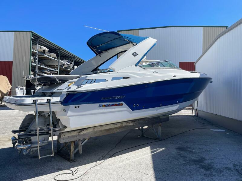 2019 Monterey 328SS with Only 121 Hours on Twin Volvo 300HP Engines and GXC Ocean Series Drives with Joystick Docking. She is Loaded with Generator, A/C in The Portside Cabin, Electric Head, Convertible Aft Lounger, Radar Arch, Raymarine GPS/Plotter, Cockpit Fridge, and More
