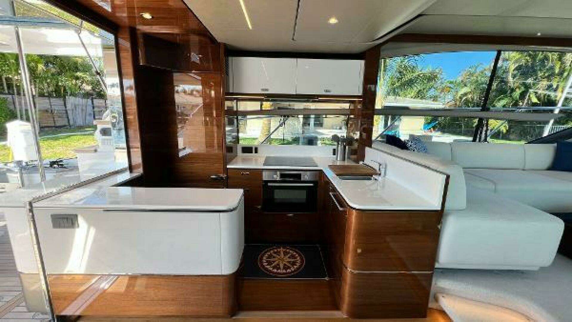 - Crew cabin aft, white hull, underwater lights, and allure package.