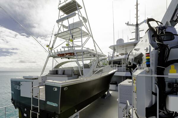 THE BEAST's tender and equipment inventory reflects her expedition yacht pedigree, with dedicated storage and handling systems.