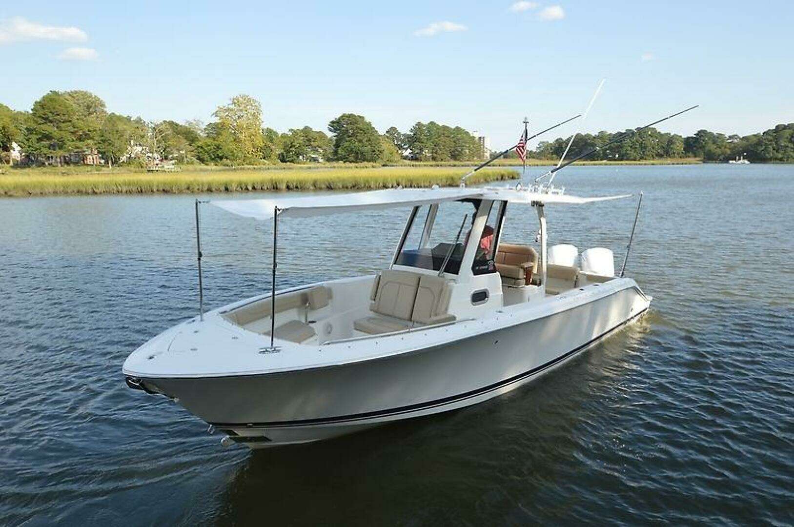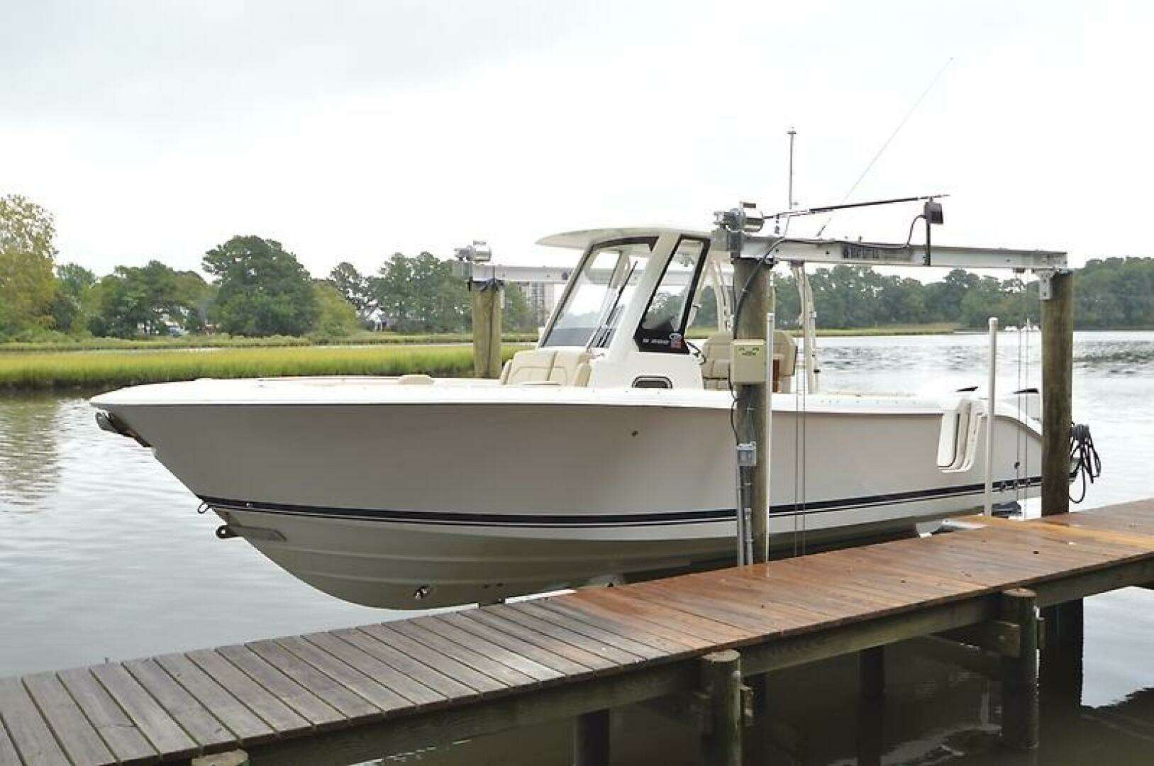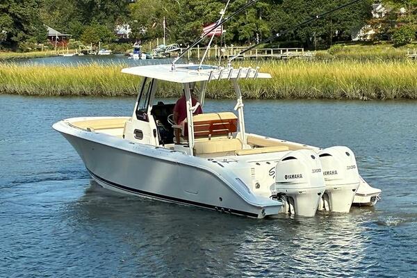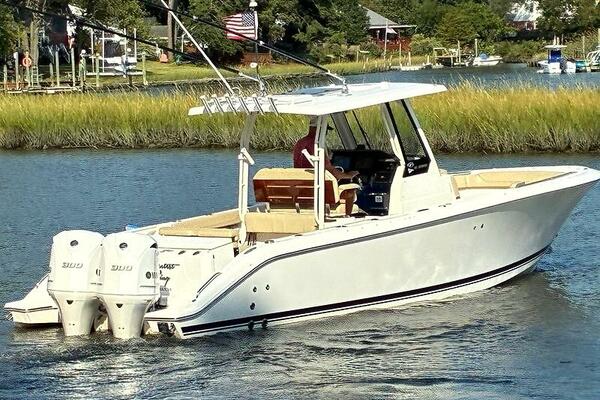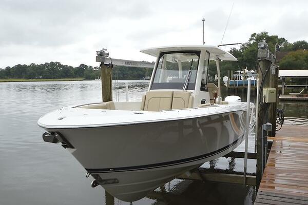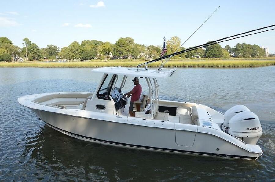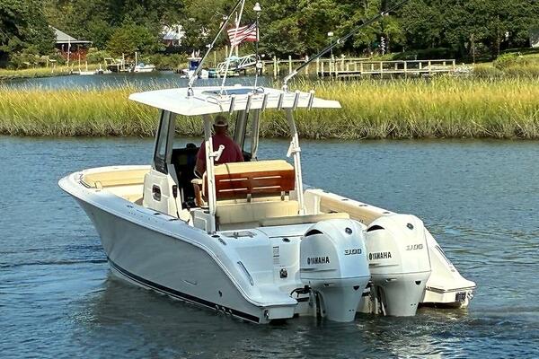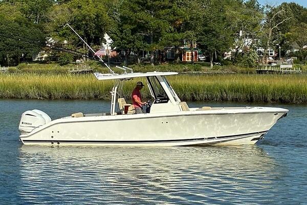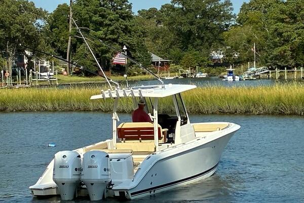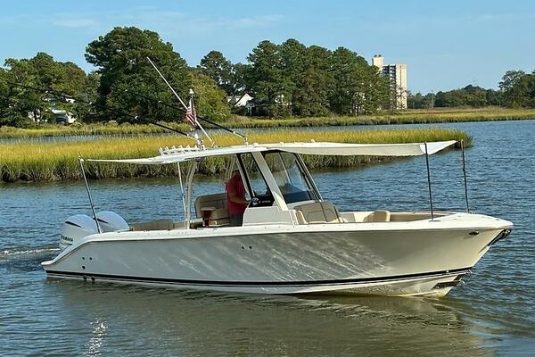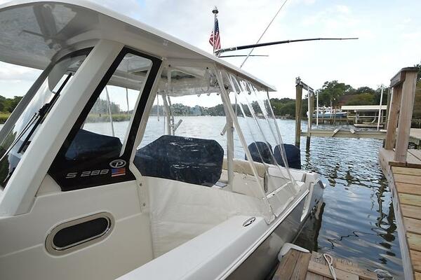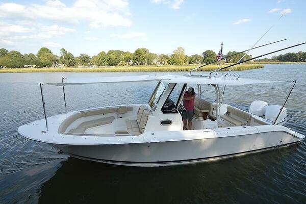 Brand new to the market, we introduce the 2019 Pursuit S 288 Center console. She has painted twin Yamaha 300's with just over 1000 hours (all services up to date), Garmin electronics package, bow thruster, side door, full canvas package (including bow and cockpit awnings), storage canvas, full head, forward seating with backrests, fold-down cockpit seating, lift kept, and so much more. Currently behind the owner's home in Norfolk, VA on her lift. Much more to come! Mark Connors 757-406-1673