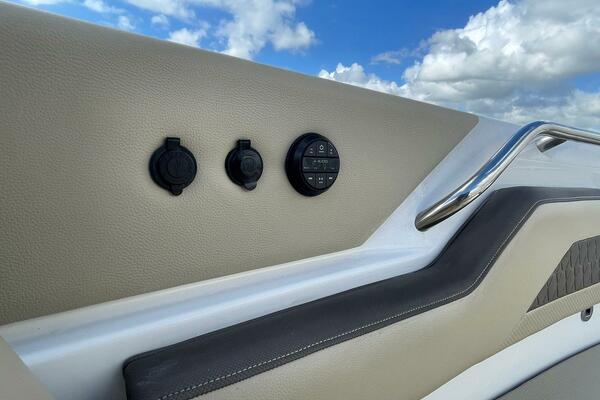 This boat was wrapped Navy Blue since it was new, the owner removed the wrap in October 2025 and it has fresh unexposed white gel coat hull sides now. Freshly compound and waxed as well.