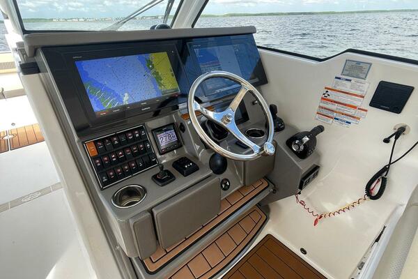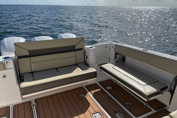 Pursuit's DC 365 dual console boat offers enhanced comfort, innovation, and features to elevate your boating experience. It includes forward bow and lounge seating, an adjustable helm seat, and foldaway seats at the transom and gunwale, providing plenty of options for relaxation and activity.