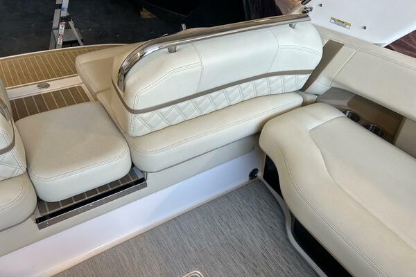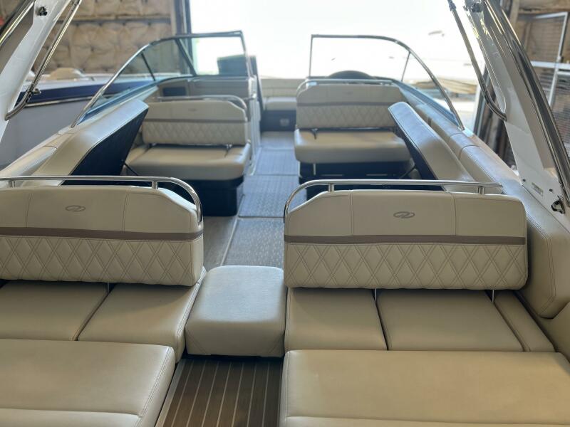 - Premium helm: hand-stitched vinyl and quality finishes at the helm station.