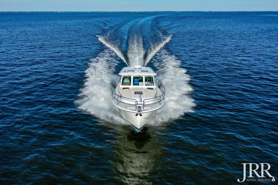 The Sabre 38 Salon Express has a classic profile, energetic performance, precise controls, and low sound levels make the Sabre 38 Salon Express an icon of nautically sensible design. Pod drives and joystick controls provide masterful control, secure handholds wherever they are needed lend security and comfort, and 360-degree sightlines at the helm allow for optimal awareness while underway. All of these features wrapped up in classic Downeast lines make the Sabre 38 Salon Express “a boat that boaters recognize.”