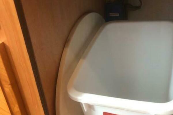 - Large hanging locker to starboard, cedar lined with shelf and hanger pole. Open shelf above the louvered door.