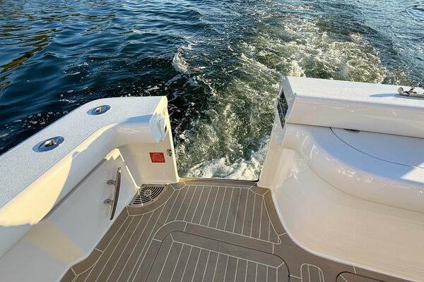 - Walk-through transom tuna door door and lift gate with transom mounted swim step