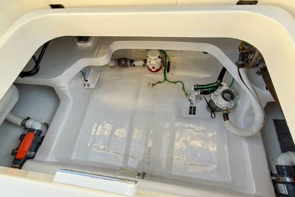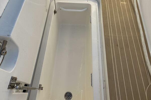 - Stall shower, fiberglass, and drain to automatic sump pump in bilge
