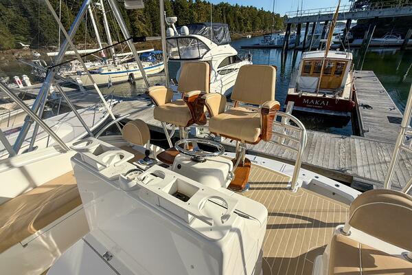- Additional Release Marine helm chair on Flybridge (Teak ladderback w/ Ultraleather)