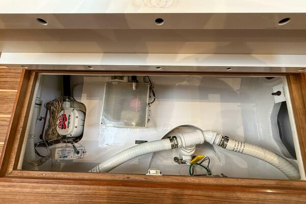 - Dockside water connection with pressure reducing valve under forward gunwale