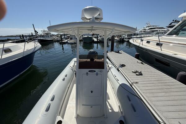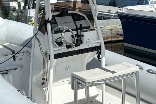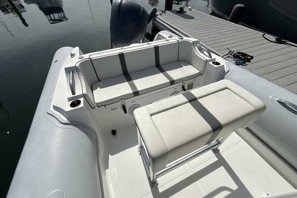 One standout feature is the custom hard top, offering enhanced protection from the sun and elements while maintaining the open-air experience RIBs are known for. The layout provides ample seating and storage, making it as functional as it is fun.