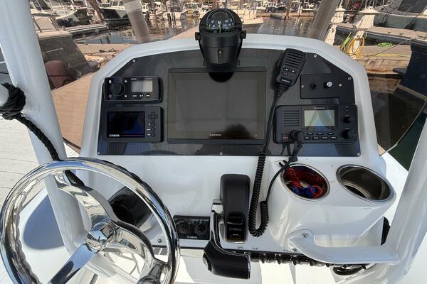- Comfortable Helm Console – Clean layout with storage and electronics space