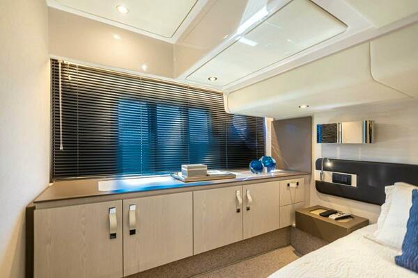 The 50’ (15.24m) Azimut 50 Flybridge yacht BLESSED is an exceptional two-story oasis for any owner interested in a tastefully styled flybridge yacht. No expense has been spared; the level of detail and luxury found aboard BLESSED is second to none. This turnkey Azimut 50 Fly has been well cared for since her launch.Ideally suited for owners with families who want to enjoy special moments and create fun memories on the water, BLESSED has three inviting enclaves for guests to utilize. The forward area of the interior is half helm, half counter-facing dinette – which perfectly suits the yacht for an owner-operator. The main deck aft is fully outfitted with a bar cabinet, lounge seating and a coffee table – ensuring it is the perfect place to unwind.